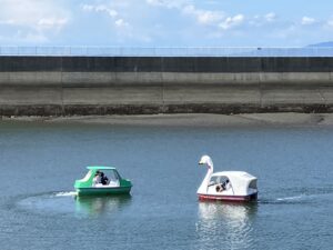 太陽🌞と青空の下で海スワンボート遊び🦢